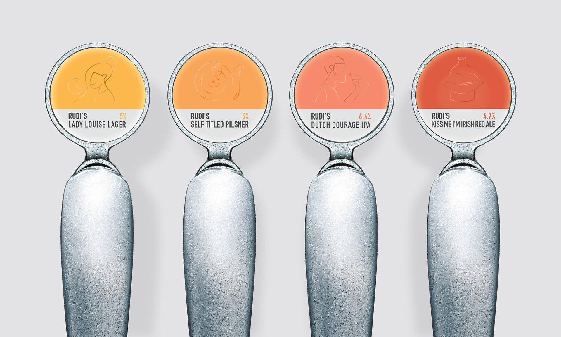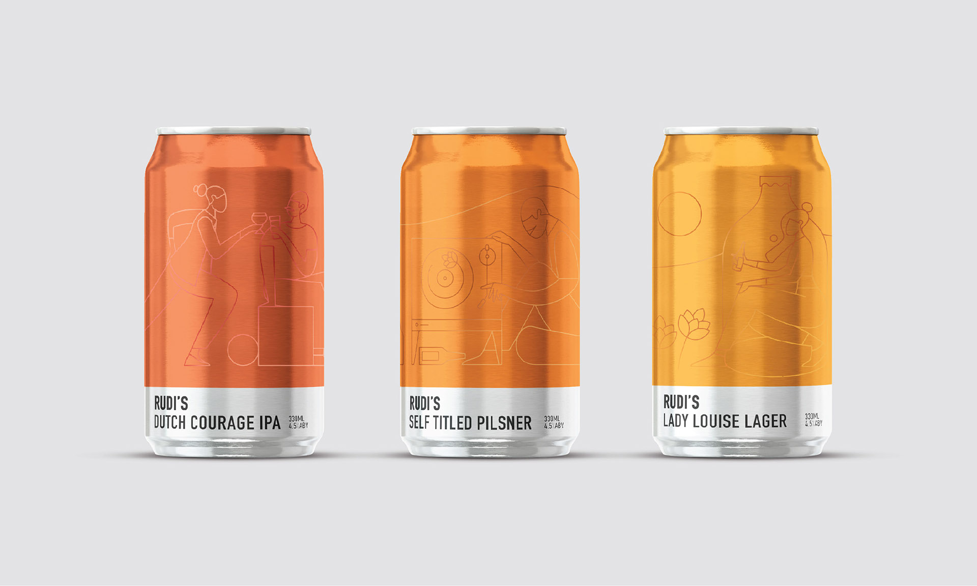 這是新西蘭的啤酒品牌Rudi's Beers包裝設(shè)計(jì)以紅、黃、橘三個(gè)暖色為主,傳達(dá)一種喝啤酒時(shí)的開(kāi)心歡樂(lè)的情緒,再搭配鋁罐的金屬質(zhì)地來(lái)呈現(xiàn)啤酒的濃郁醇厚,結(jié)合插畫(huà)的形式創(chuàng)造了一款獨(dú)特個(gè)性的包裝設(shè)計(jì),在競(jìng)爭(zhēng)激烈的精良啤酒市場(chǎng)中清晰的區(qū)分了他們的品牌。