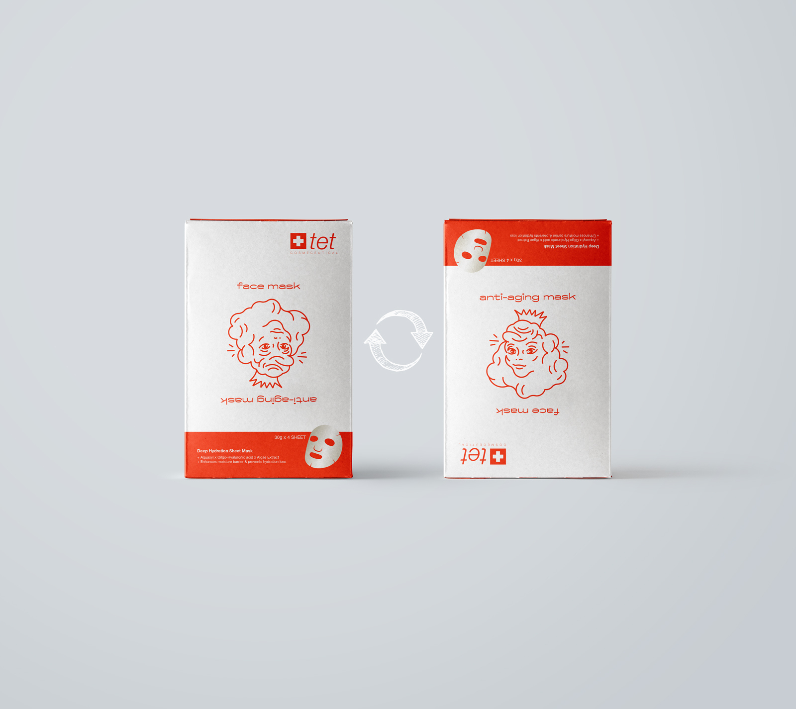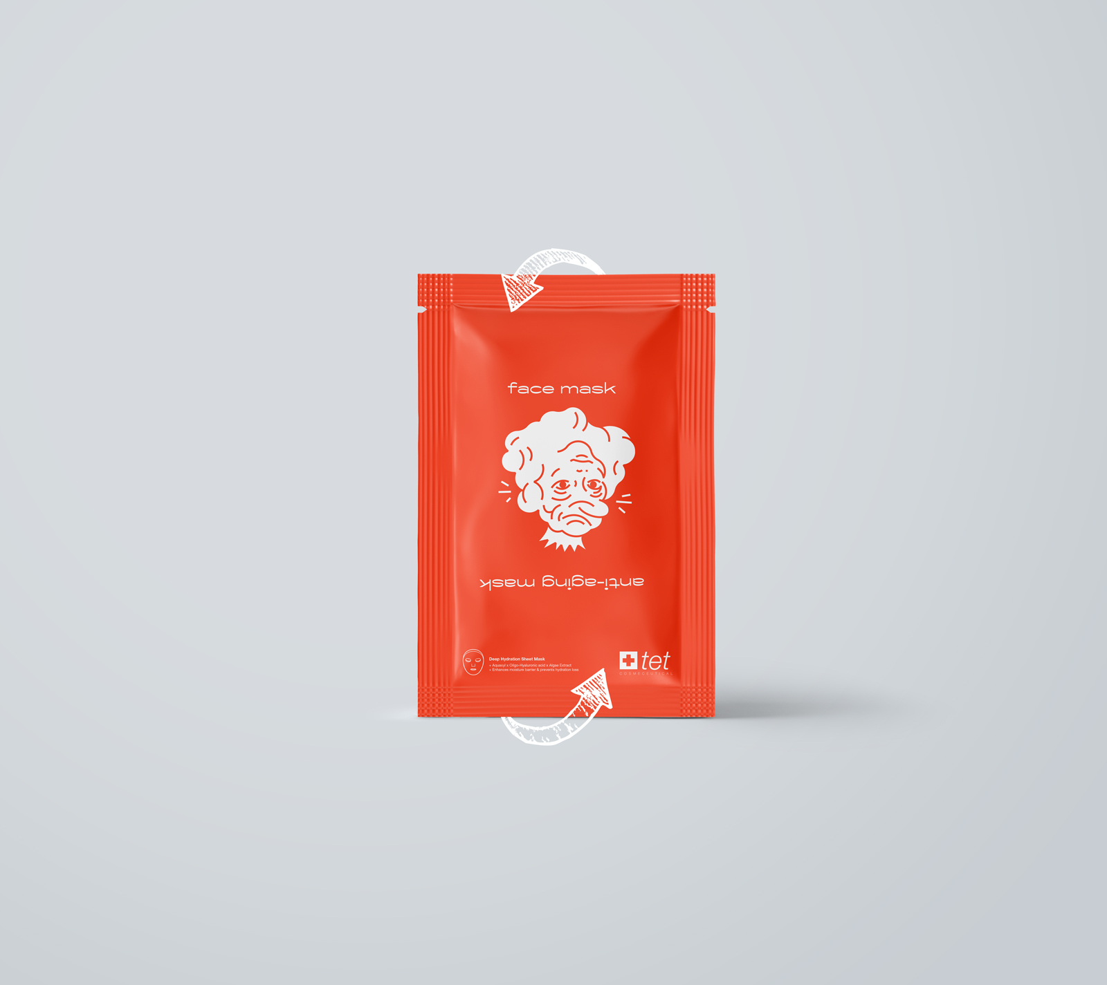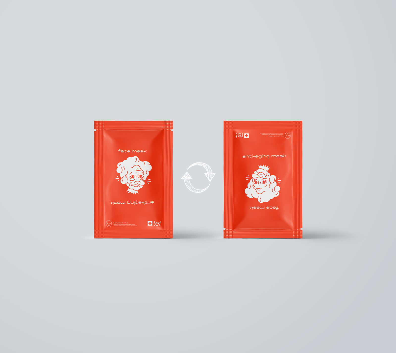 Anti-aging是一款抗衰老面膜,采用幽默風(fēng)趣的表達(dá)手法將產(chǎn)品的特點(diǎn)清晰展現(xiàn)出來,將包裝的口袋翻轉(zhuǎn)過來,立刻把一個皺巴巴的老太太變成了一個年輕漂亮的女人,趣味性十足,抓住了人對有趣事物充滿好奇的心理。